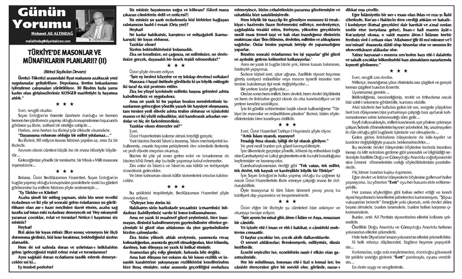 Mehmet Ali Altındağ, Diyarbakır Söz gazetesindeki köşesinde, Cumhurbaşkanı Erdoğan’ın konuşmalarıyla Bediüzzaman’ın bir asır önce yazdıkları arasında paralellik kuruyor: