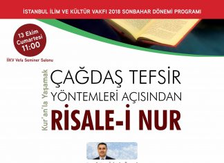 İİKV'nin 2018 Sonbahar dönemi Kur'ân'la yaşamak seminerlerinin ilkinde Risale-i Nur, çağdaş tefsir yöntemleri açısından ele alınacak.