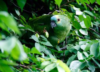 O bir yeşil papağan.